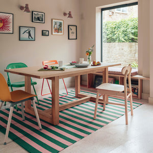 Our collection of wool rugs and runners includes a wide range of striped, flatweave and heavyweight styles made from ethically sourced New Zealand wool. Whether you're looking for a modern blue, green or red wool rug, a classic hallway runner or a bold striped statement piece, each of our handmade designs combines warmth, texture and timeless quality.