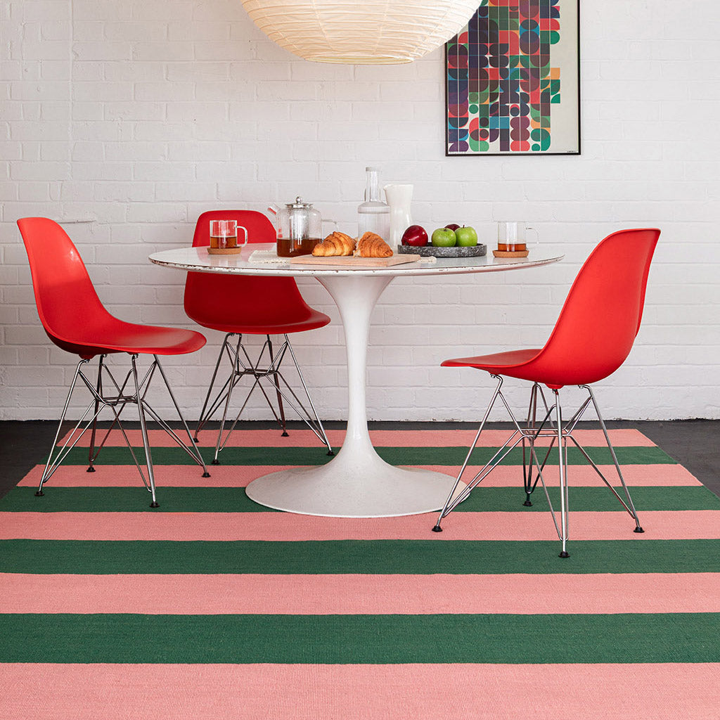 MoreBeautiful finish - A modern pink and red striped rug, in colours handpicked by interior designers